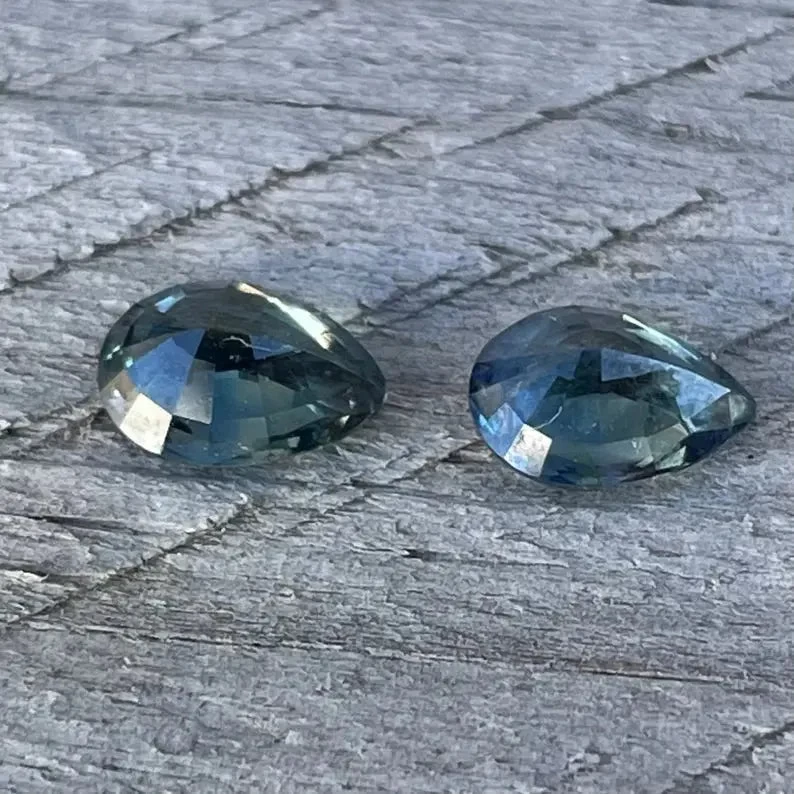 Natural Blue Green Sapphires Pair | Pear Cut | 1.72 Carat | 7x5mm | Natural gemstones for an Earring | Jewellery Making Gemstones