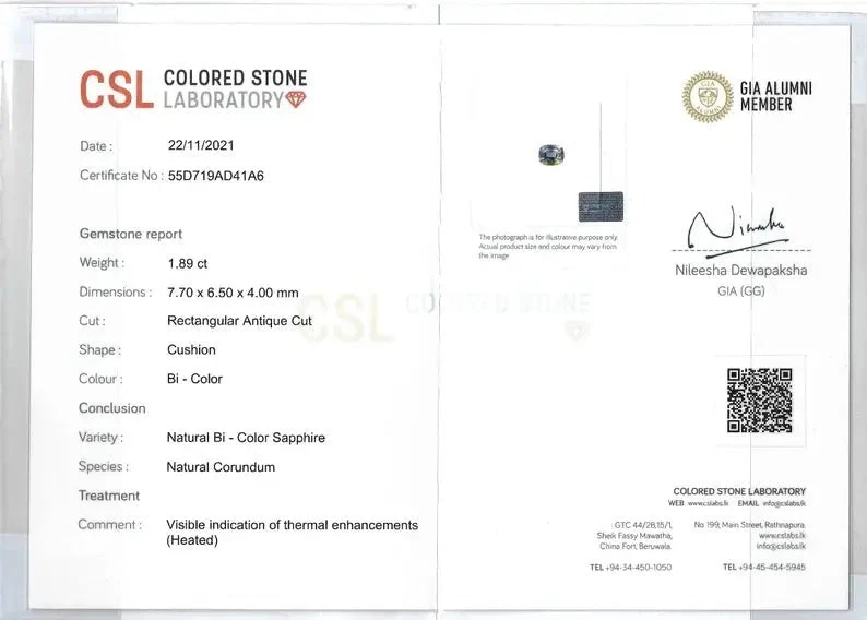 This striking 1.89 carat natural blue yellow sapphire features a beautiful cushion cut and showcases an exquisite blend of rich blue and warm yellow tones. Ethically sourced from Ceylon (Sri Lanka), this rare bi-coloured gemstone is eye-catching, clean, and ideal for custom engagement rings, one-of-a-kind pendants, or collector-grade jewelry pieces.