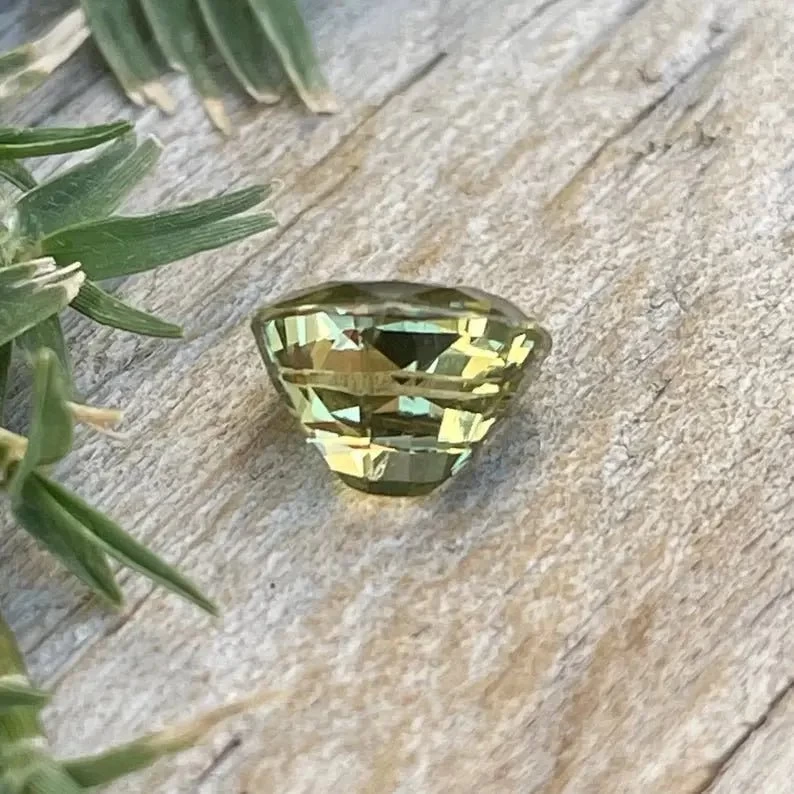 Explore the rare charm of this Natural Green Chrysoberyl, featuring a beautifully faceted cushion cut and naturally unheated clarity. Sourced ethically from Sri Lanka, this 1.50 carat gemstone boasts a soft green hue and excellent brilliance.