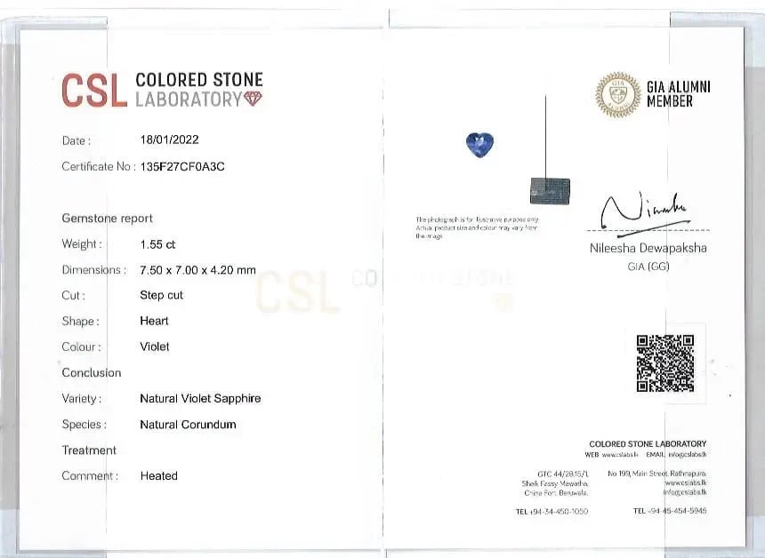 - Authenticity: Includes Gemstone Authenticity Confirmation