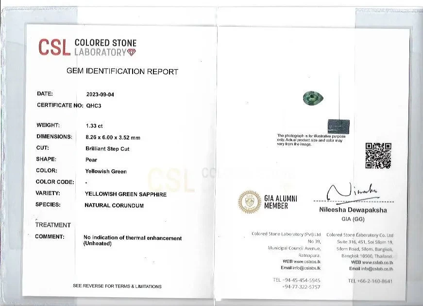 This Natural Parti Sapphire features a stunning mix of green and yellow tones in a classic pear cut. Its vivid bi-color zoning offers a mesmerizing effect that shifts with the light—making each gemstone completely one-of-a-kind.