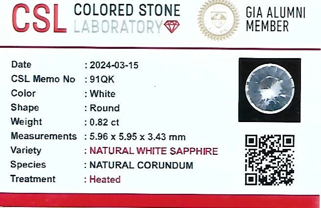 Natural White Sapphire | Round Cut | 0.82 Carat | Ceylon